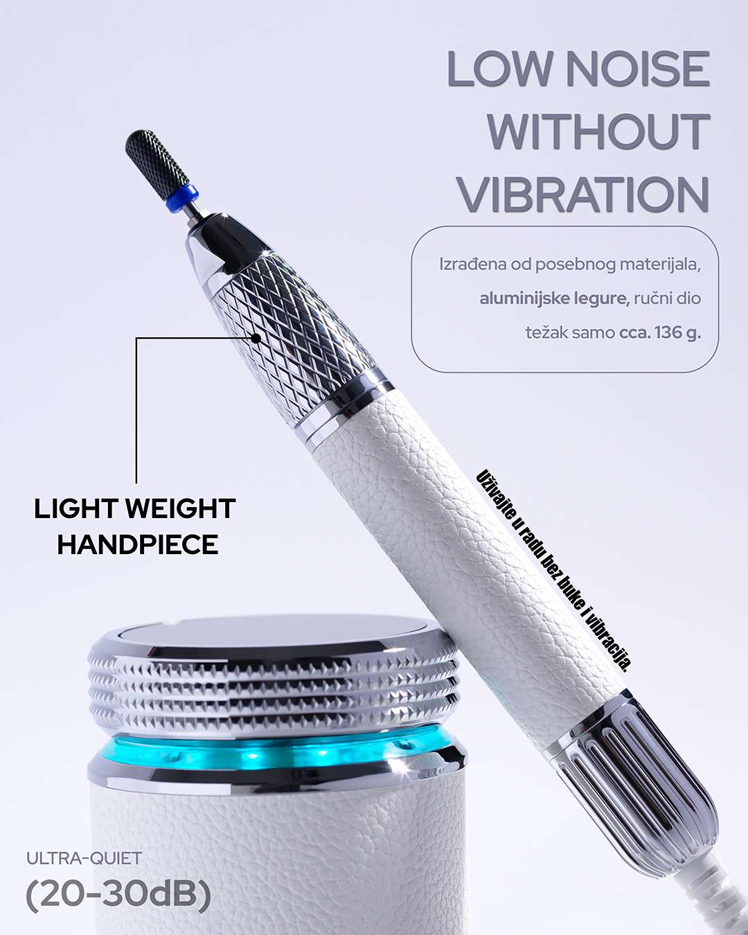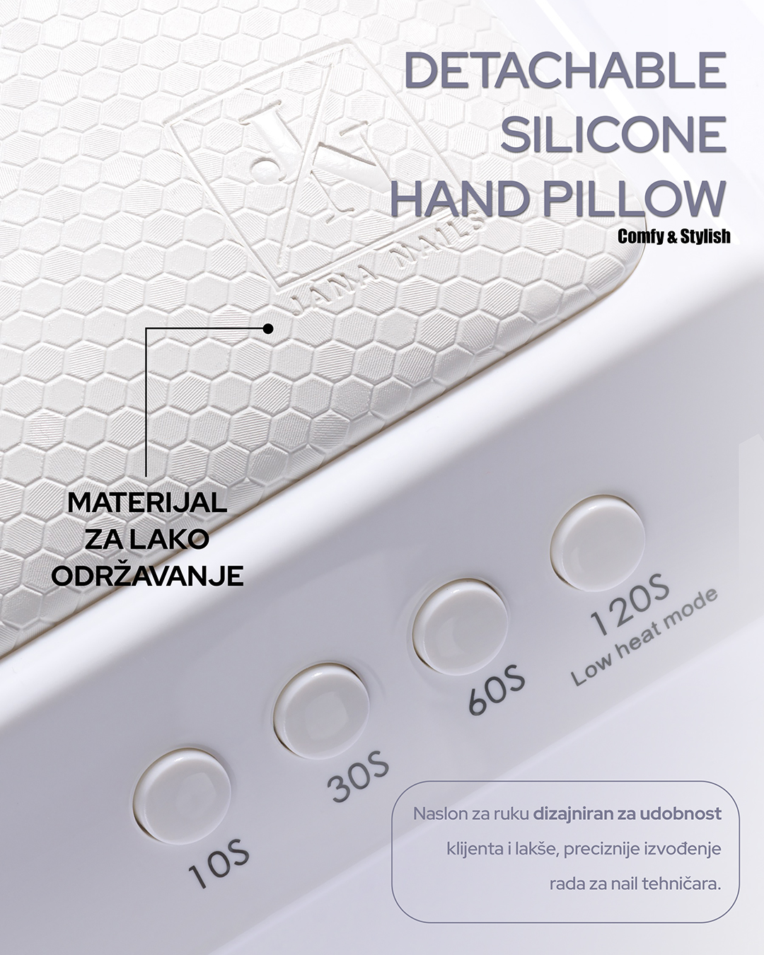 ✔ Odvojiva baza i jastučić – jednostavno čišćenje i mogućnost upotrebe za pedikuru.