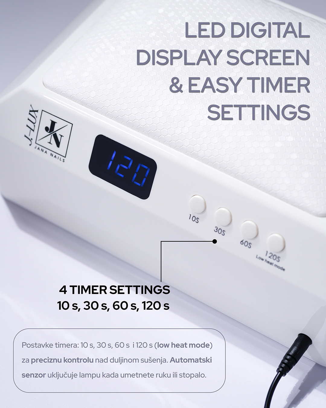 ✔ Veliki LED zaslon i 4 timera – 10 s, 30 s, 60 s i 120 s (Low Heat Mode).