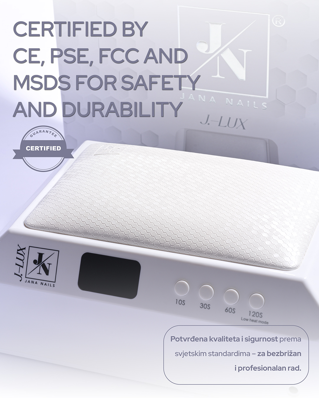 ✔ Sigurnost i kvaliteta – certificirana prema CE, PSE, FCC i MSDS standardima za bezbrižan i profesionalan rad.