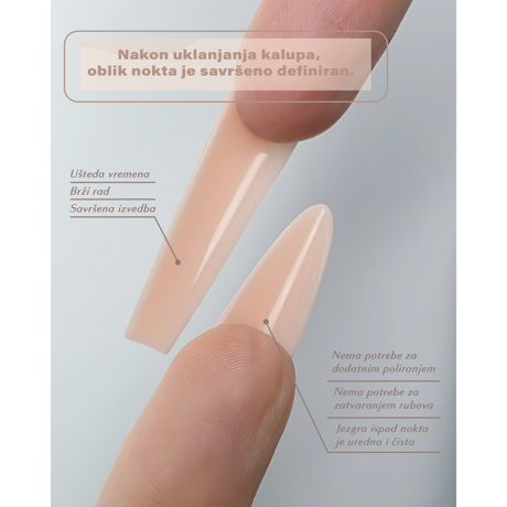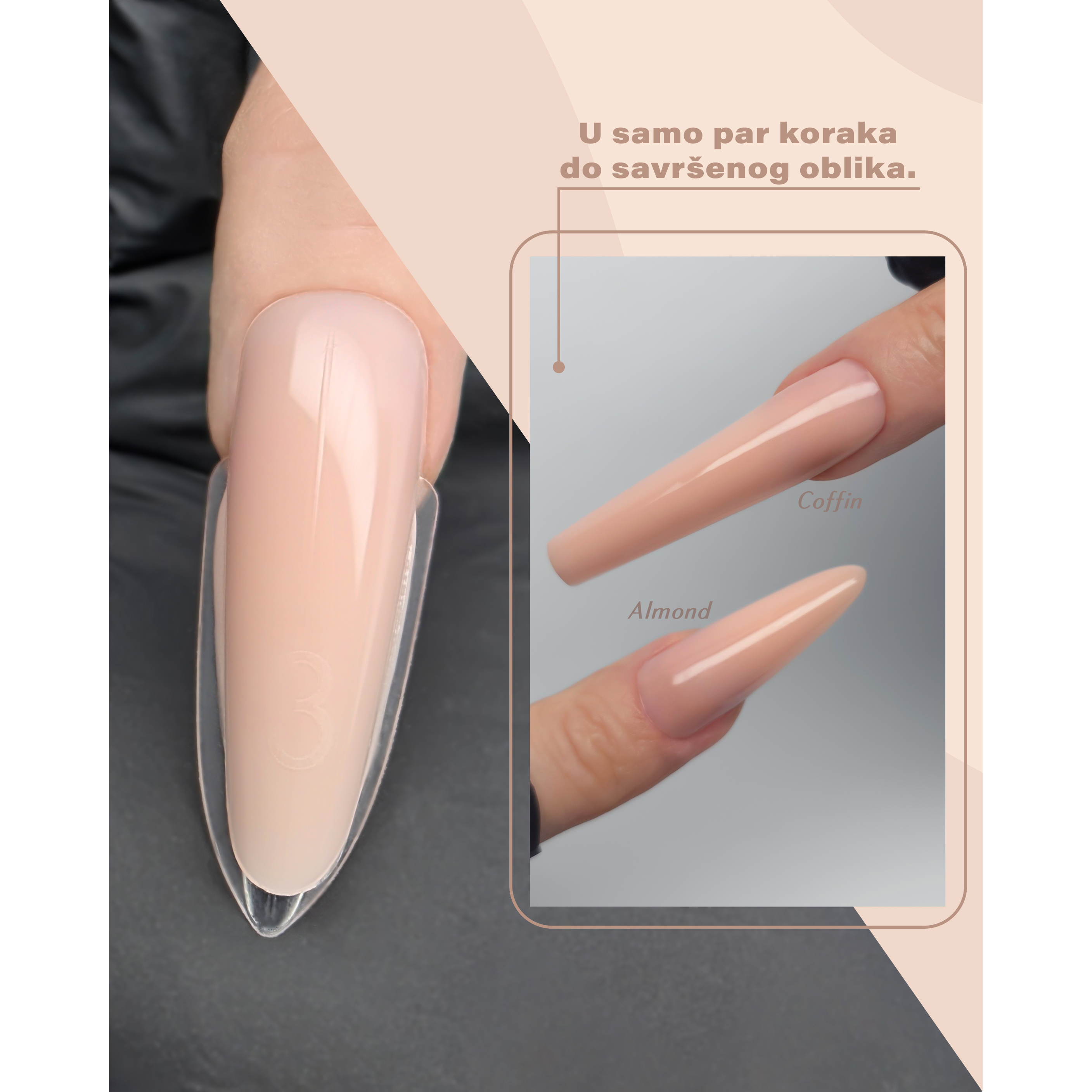 - Sastoje se od gornje (top) i donje (bottom) forme, dizajnirane za potpunu kontrolu strukture, debljine i C-krivulje nokta.