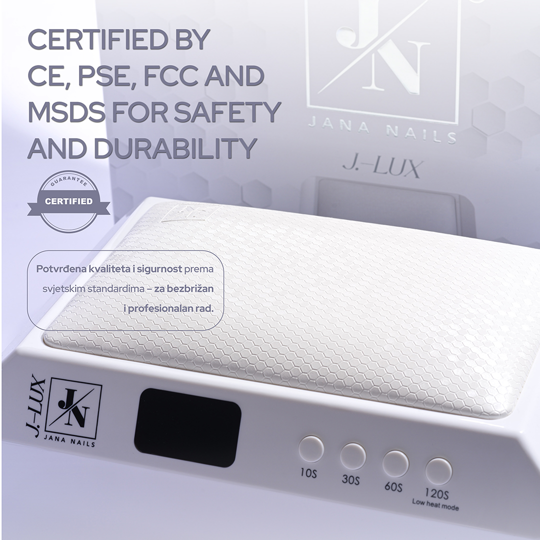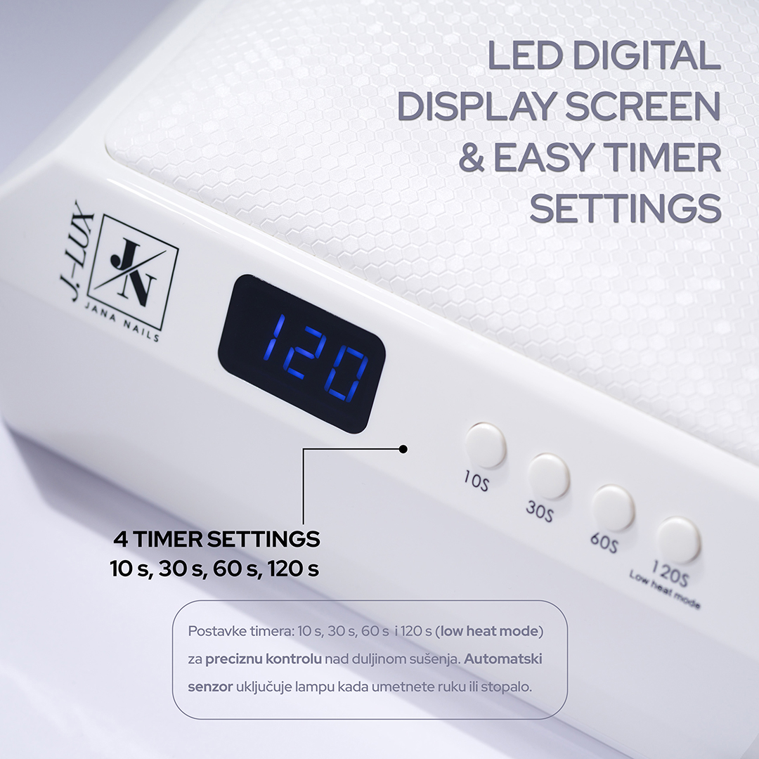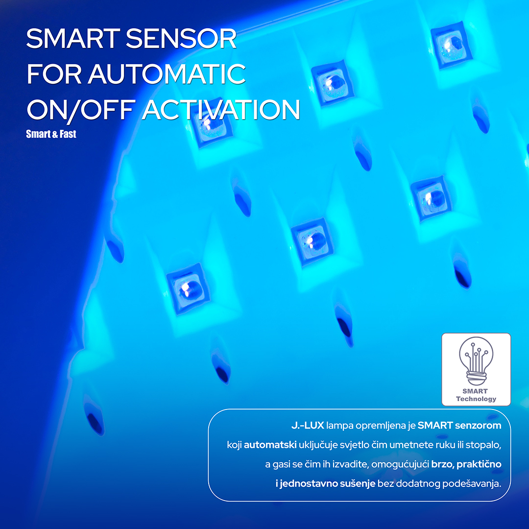 J.-LUX spaja snagu, ergonomiju i inteligentnu tehnologiju. Svaka dioda strateški je postavljena kako bi osigurala potpuno ravnomjerno sušenje bez tzv. mrtvih kutova, što jamči savršen rezultat u rekordnom vremenu.