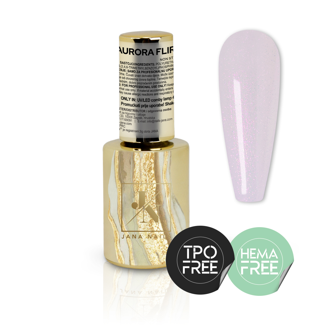 Aurora top coat je bez ljepljivog sloja s ultra nježnim i mega sjajnim česticama aurora praha. Savršen je za glam završni touch preko nude podloge, frencha ili bilo koje boje (ovisno o podlozi, mijenja boju). 💅🏻✨