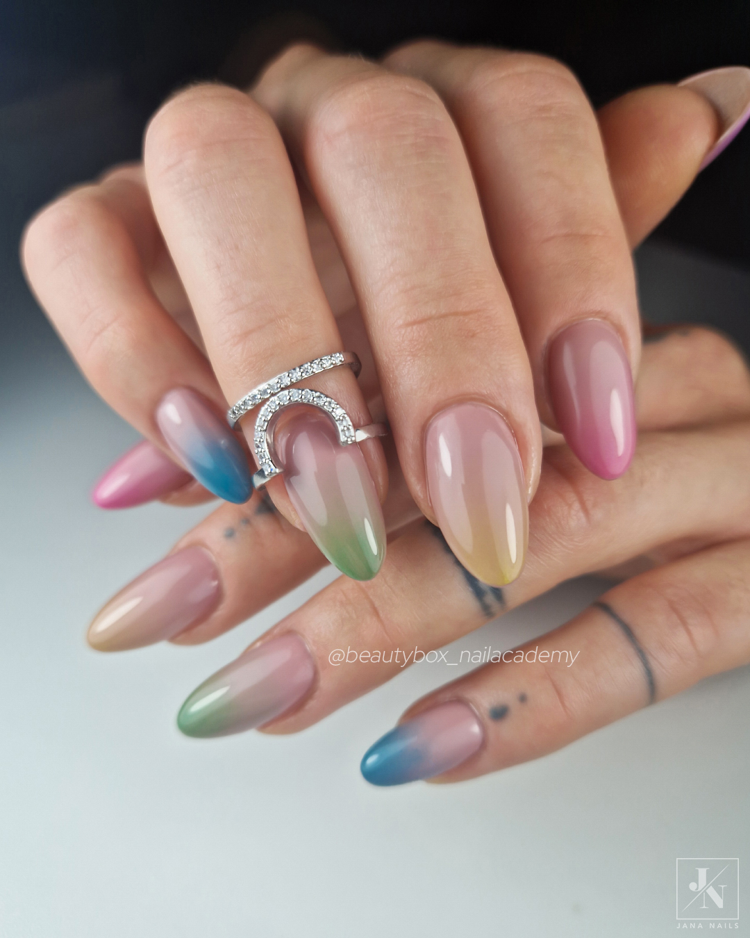 Kao soft semitransparent nijanse – nanesene na gradivni gel ili acrygel za prirodan i elegantan dojam.