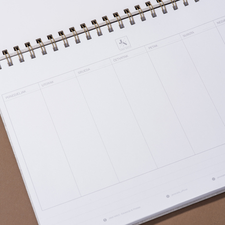 Planer je vrlo jasan, prostran i pregledan – od ponedjeljka do nedjelje, s dovoljno prostora za obaveze, ciljeve i male trenutke koje ne želiš zaboraviti. Na dnu te čeka dodatni redak za posebne bilješke ili inspiraciju, a čist dizajn pretvara planiranje u mali dnevni ritual.